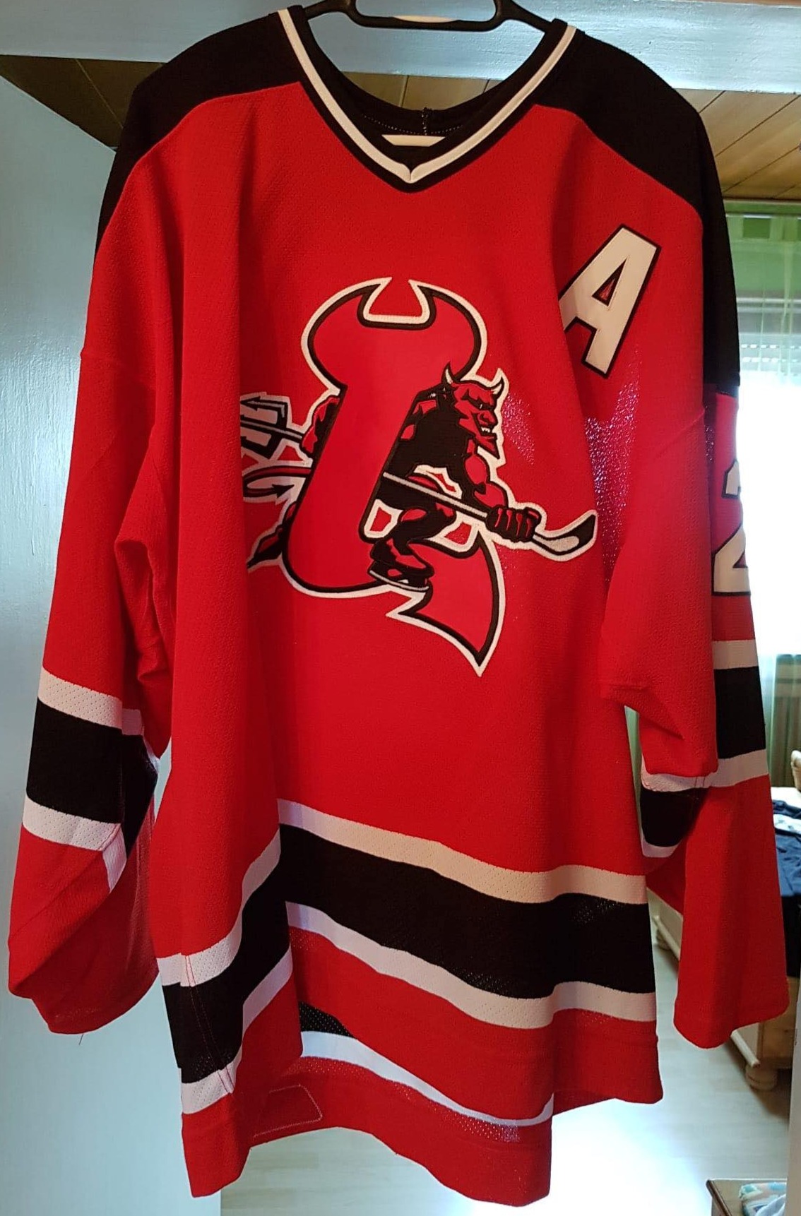 These jerseys were used for the 2004-05 pre-season games of the Wolf Pack as well as for the 2002 and 2003 pre-season games of the NY Rangers.